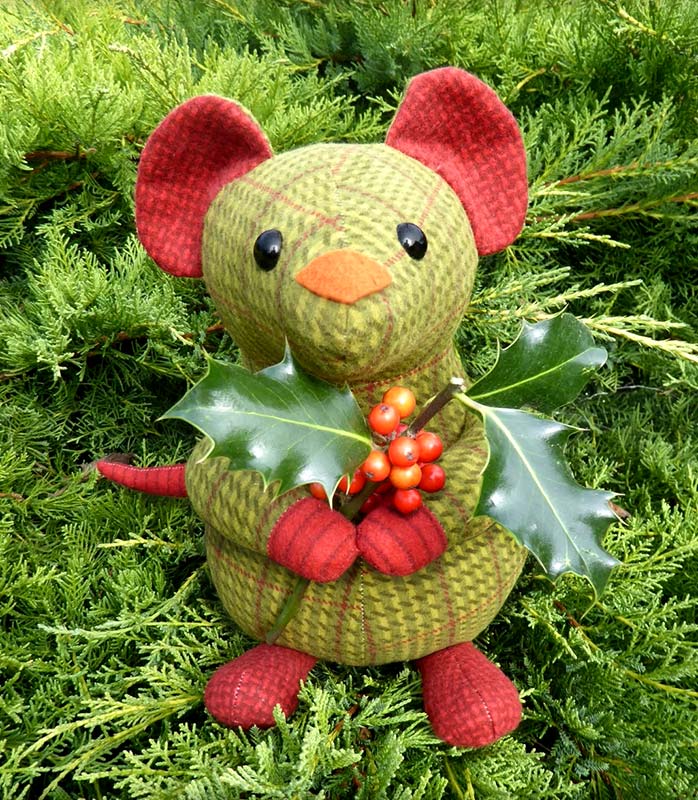 I love this little Maximus Mouse perched in some evergreens. Almira.S. has posed Maximus with some holly instead of his felt cheese.