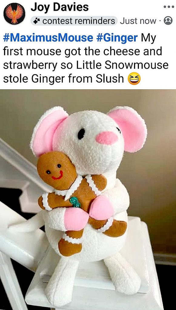 Laura Peters Cartoscelli also posed Maximus MouseΒ with little Ginger the Gingerbread Man.