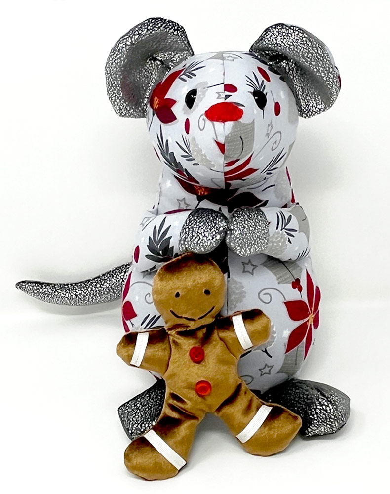 The Maximus Mouse pattern comes with two pieces of felt food in his pattern (cheeseπ§ and a strawberryπ), and Joy Davies discovered that my free Ginger the Gingerbread man pattern fits perfectly in the Mouse’s little paws.