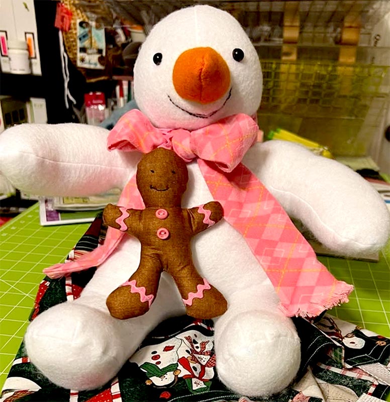 Sandy Smith added a pink fleece scarf to her Slush Snowman and decorated Ginger the Gingerbread Man to match! πΒ