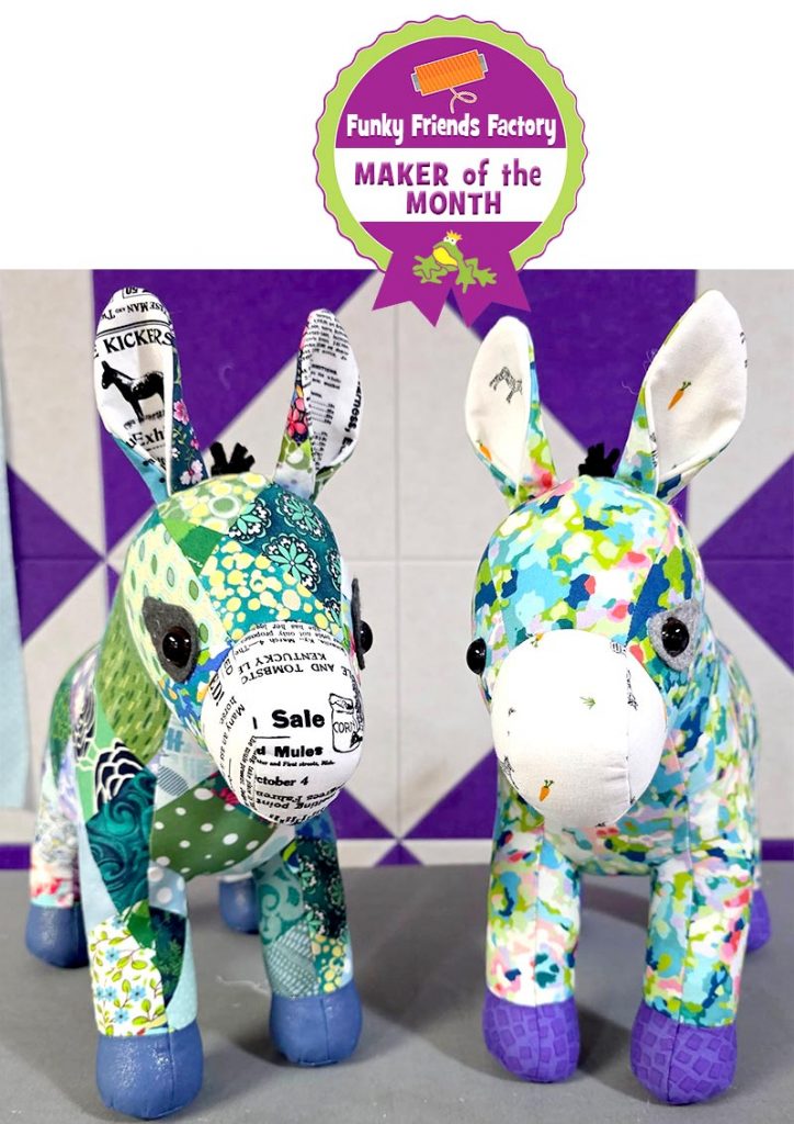 Congrats to this month’s winner Mary Shaw. who sewed this pretty cute pair of Dynamite Donkeys!