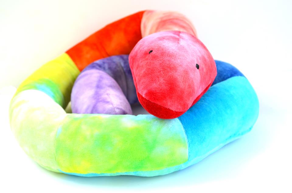 “I use hand dyed organic bamboo velour to create my softies. I dye my own fabric, which gives me the ability to create truly unique one of a kind plushies. It makes the toys incredibly cuddly and squishy soft, which is definitely a bonus when it comes to sewing a plushie.”