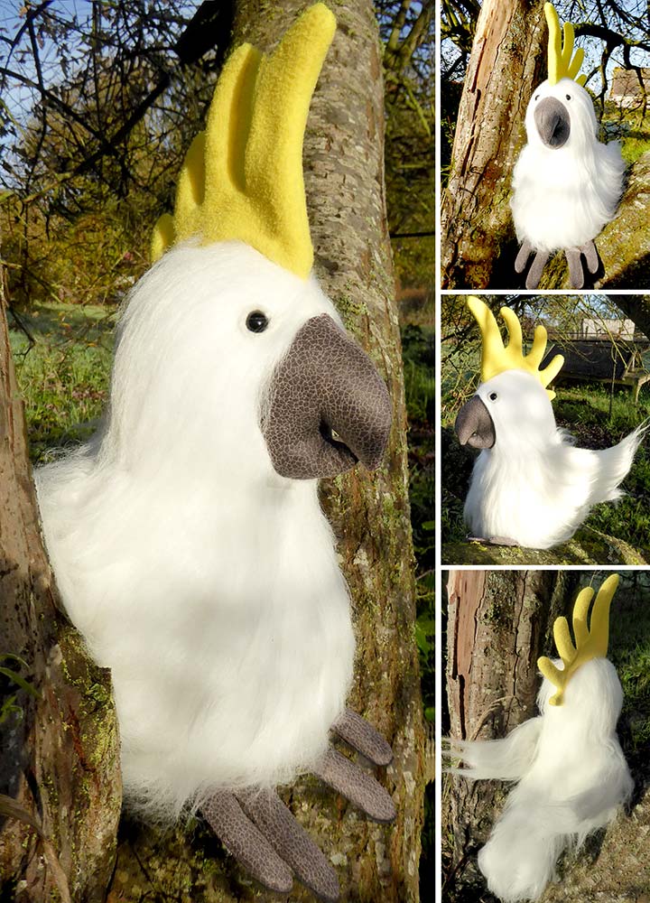First up, there’s long-pile fake fur like this fluffy white cockatoo also sewn by Almira.S. Fake fur is one of the most difficult to fabric to sew BUT it looks really realistic! Almira says that with the long fur she decided to skip sewing around the wing’s edge and didn’t stuff the wings because they already had some volume on their own.