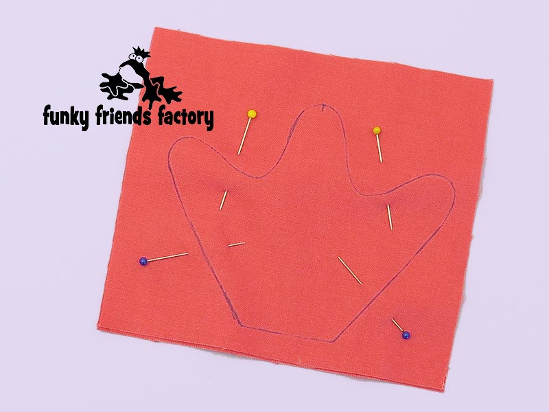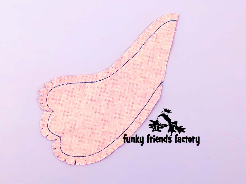 Sew the WING PIECES together on the sewing line. Cut the WINGS out with a 5mm/¼inch seam allowance (outside the sewing line). Clip the seams well, where they are very curved (especially in between the ‘fingers”).