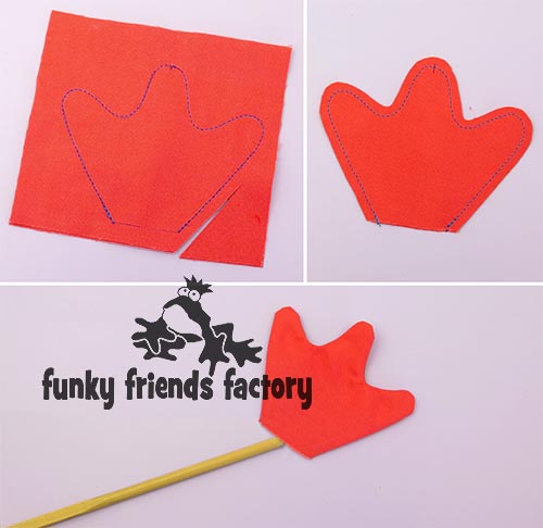 TIP: This is what the pieces will look like from the right side – the ‘toes’ should point up to the top of the Chicken’s head.