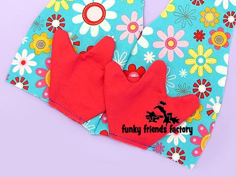 TIP: I used a knit(stretchy) fabric so the points of the COMB PIECES will turn easily. Clip the seams really well in between the ‘points’ of the COMB before turning and use a chopstick/turning tool to make the points turn nicely.