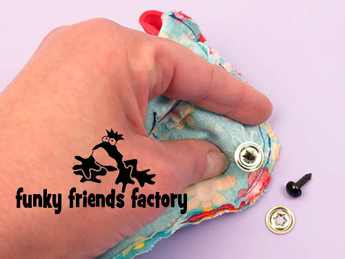 If you are using CRAFT EYES, insert them now. (If you are embroidering the EYES, do this later – after the Chook is stuffed.)