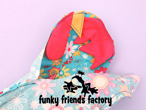 TIP: Use a thin, fabric like cotton for the BEAK PIECE or it will be too thick to sew through all the layers!
