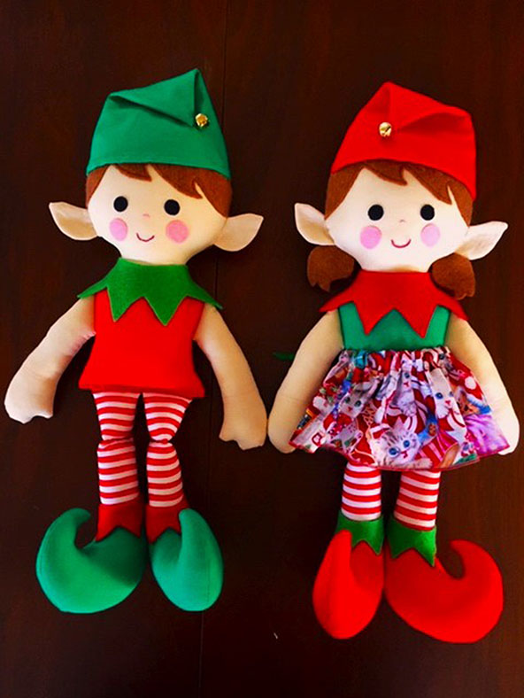 Joy Davies has sewn the Christmas Elves with a ‘summery look’ by using plain skin tone fabric for the arms. (I think this is what Australian elves would look like because it’s too HOT here to work in long-sleeves!!!🤣)