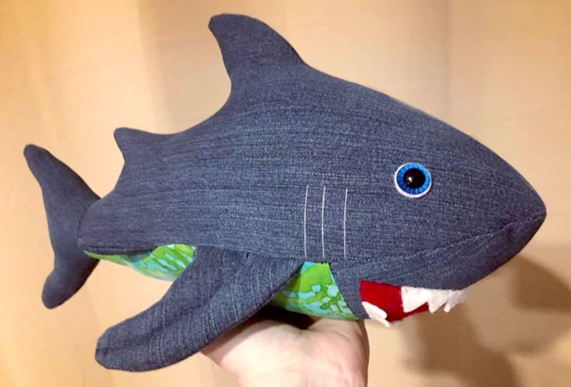This upcycled jeans shark was sewn by Cassandra Helzer.