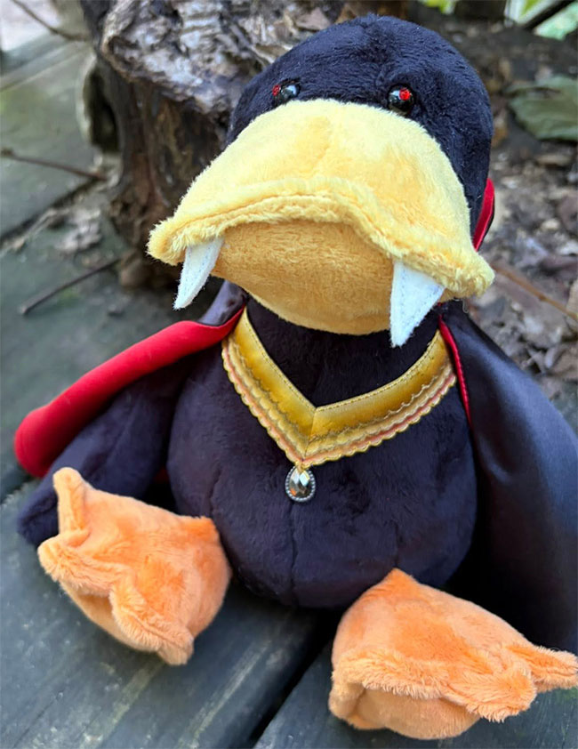 And Rebecca Karstad sewed Dilby Duck as ‘Count Duckula’ – (she used the FFF Free vampire pattern Add On for his cape and fangs!)