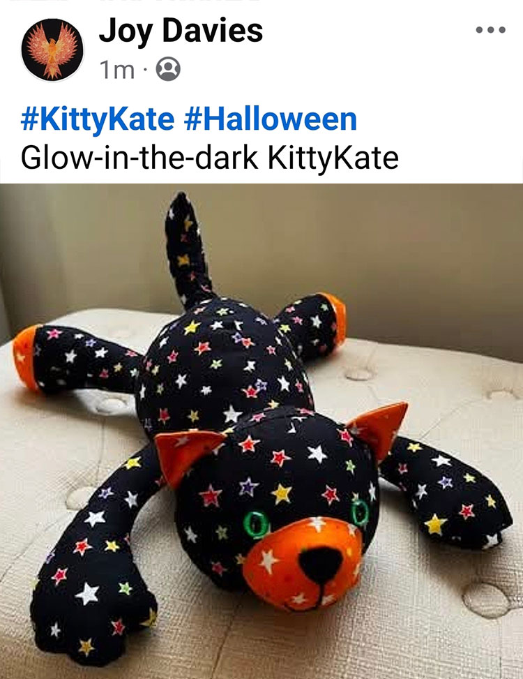 Joy Davies sewed her Halloween version of the Kitty Kitty Kate Cat Pattern using glow in the dark fabric!