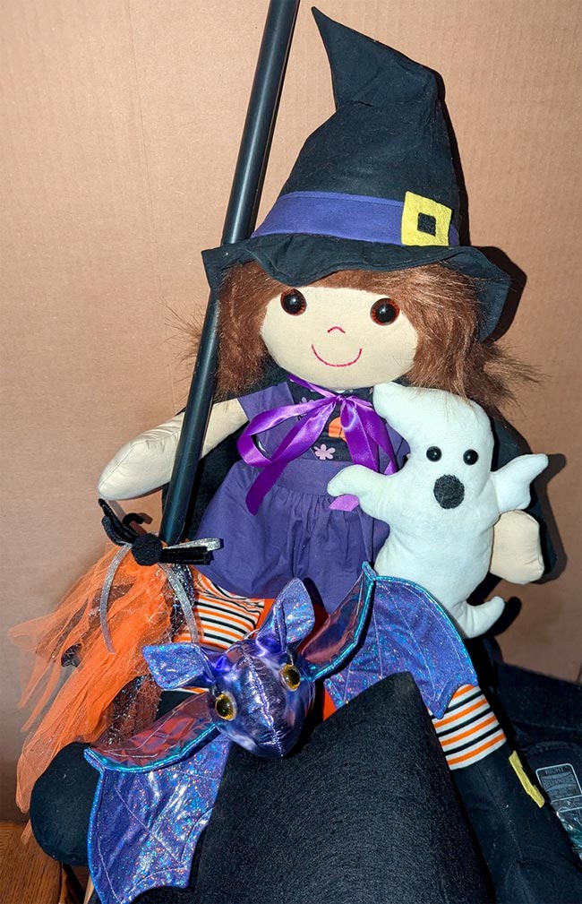 Sheila Hanson sewed Maximus Mouse in a Halloween print… he’s ready for Trick or Treating with the little pumpkin flashlight in his paws!🎃