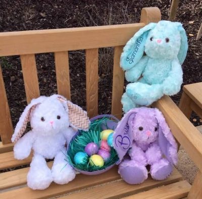 The Easter Bunny Buddies Pattern looks great in lots of fabrics. Michelle of Michelle’s Zoo made a trio of cuddly minky bunnies, while Amy Rutland-Jones used baby clothes to make a one-of-a-kind keepsake.