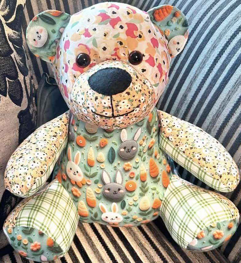 You can use Easter colours or fabrics like Carol Snell did for this Ben the BEGINNER Bear – love the CARROTS on his tummy!🥕🥕🥕