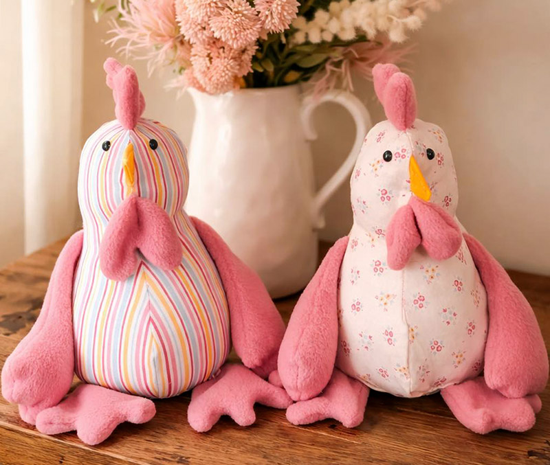 For example, these cheerful Cheeky Chooks / Chickens sewn by Sarah Rackham look pretty in pastel shades for Spring.🌷