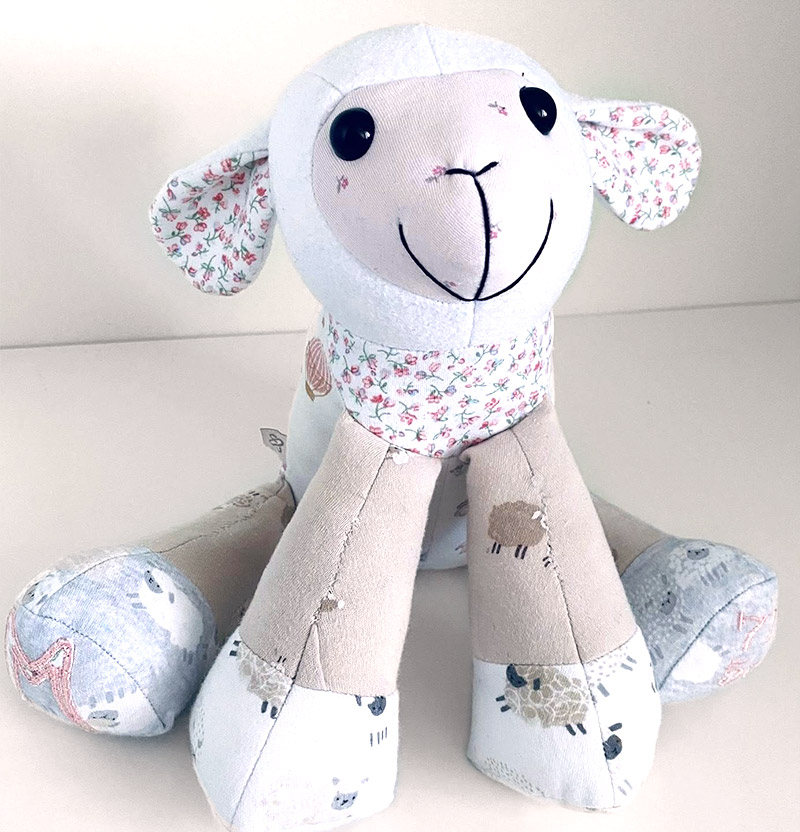 Lamkins Lamb will frolic off your sewing table and into your heart. I suggest using fleece for Lamkins on your first try if you’ve never sewn opposing curves, as it’s stretchy and easier to pin. here’s a sweet memory toy version of Lamkins Lamb was sewn by Elizabeth Percival of Dolli-mixtures Keepsakes. 🩷