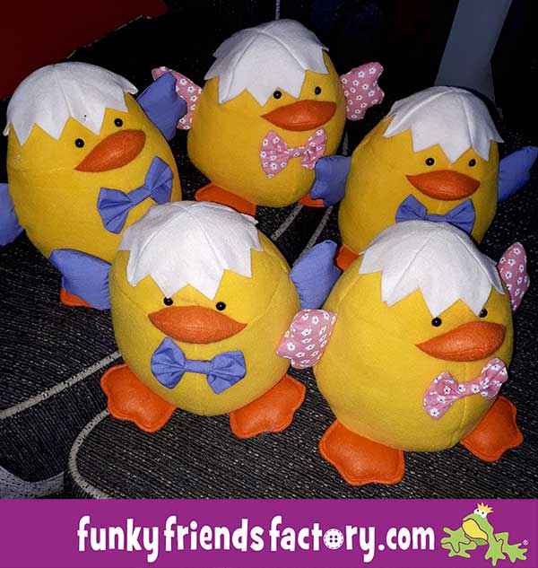 Easter’s coming up so there have been lots of photos of Easter Chick soft toys. Maybe you’re looking for something sweet to sew for Easter gifts… instead of chocolate? 😀 Look at these awesome versions of my Eggbert Easter Chick sewing pattern that Joy Wright sewed for her grand kids!