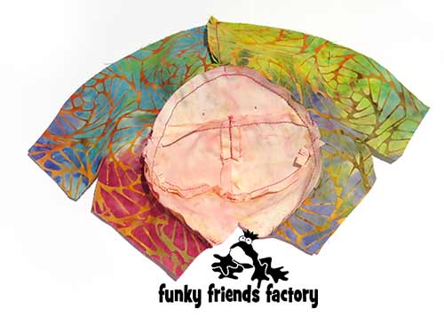 Sew the BACK HEAD PIECES to the FACE PIECES from V – J – V, with the EARS in between.