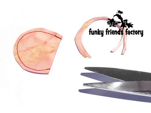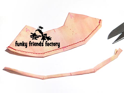 Trim the seam allowance to 3mm(⅛inch) and turn the NOSTRILS right sides out.