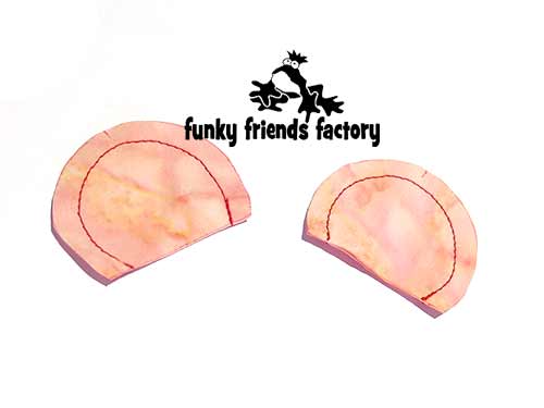 Sew the EAR PIECES together in pairs, leaving the straight edges open.