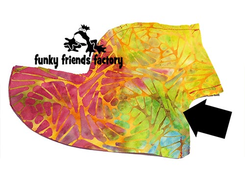 Pin and sew the LEGS to the BACK PIECES, with a 3mm(⅛ inch) seam allowance, matching the dot pattern markings.