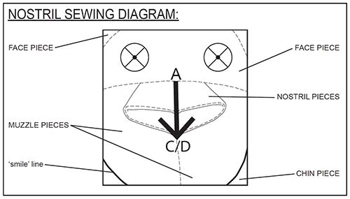 Sew the MUZZLE PIECES together from A – B.