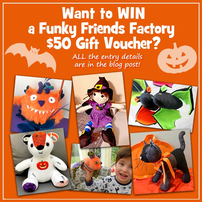 It’s easy to be in the running to win! Just post a photo of ANY Funky Friends Factory Pattern that you have sewn AS A HALLOWEEN TOYΒ in our Pattern Fan Club Group or email us your photo if you’re NOT on Facebook.