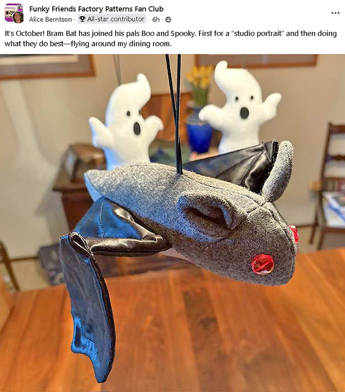 (It can be ANY Funky Friend Factory pattern that YOU have sewn – one of the Halloween Patterns OR any other Funky Friends pattern sewn in Halloween colors or Halloween print fabrics! In other words – it needs to be a Funky Friends Factory toy YOU have sewn that LOOKS “Halloweeny”!)