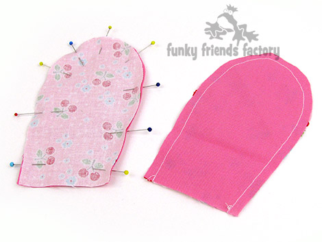Sew the EAR PIECES together in pairs (1 main and 1 contrast fabric)