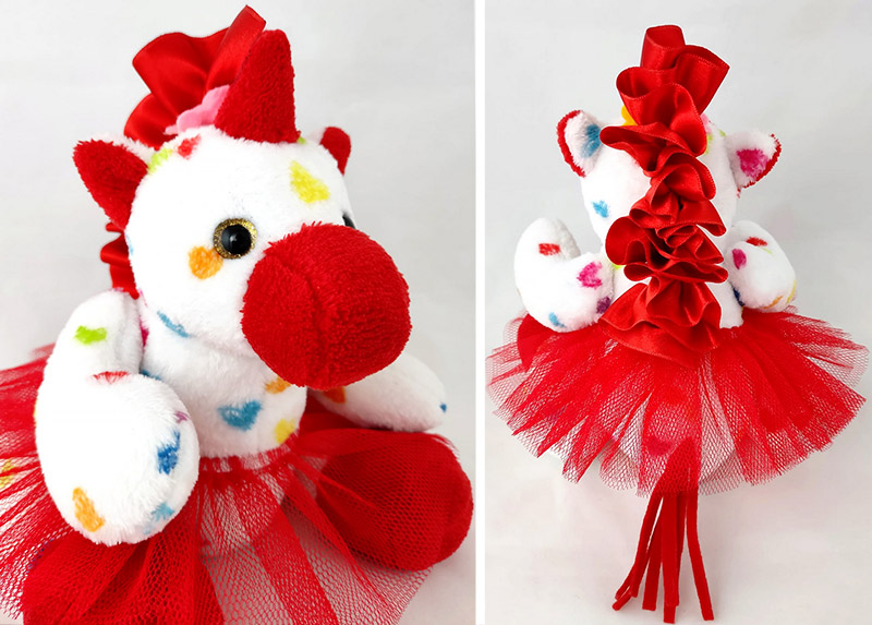 This cheerful Kelsey Keepsake Unicorn was created by Carla Quintana Rodriguez. The brightly coloured tulle looks wonderful – I just want to smile when I look at this happy pic!