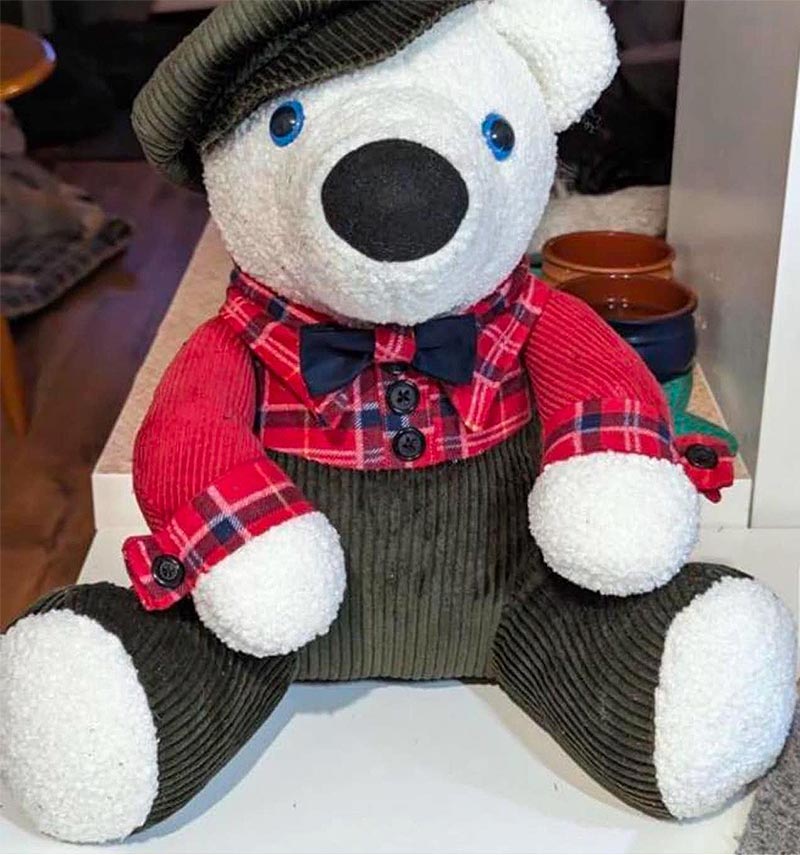 Who says a keepsake needs to be bright and colourful? Look at this beautiful this black and white Calico Signature Bear sewn by Dawn Rimby.