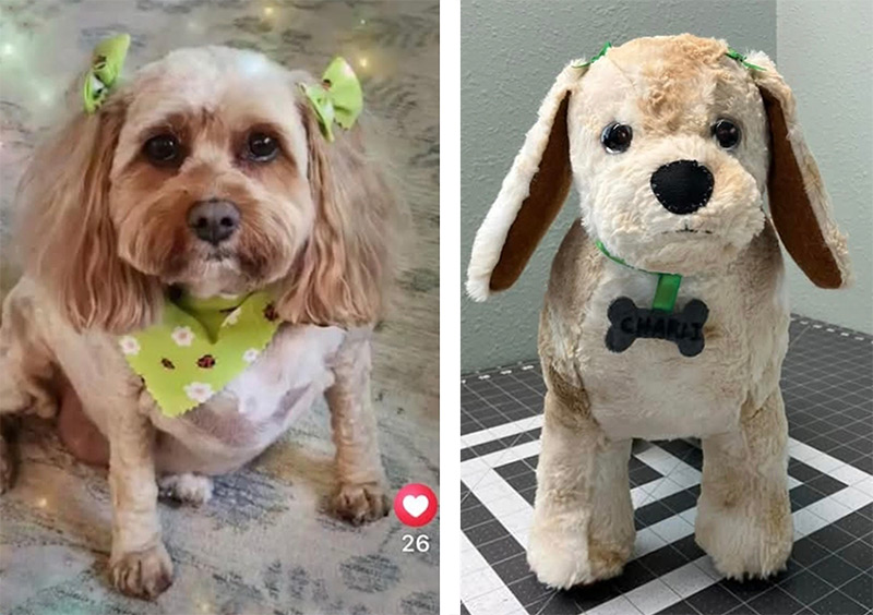 This beautiful pet memory toy version of Poppy Puppy was sewn by Laurie Barbaro who recently lost her precious dog.