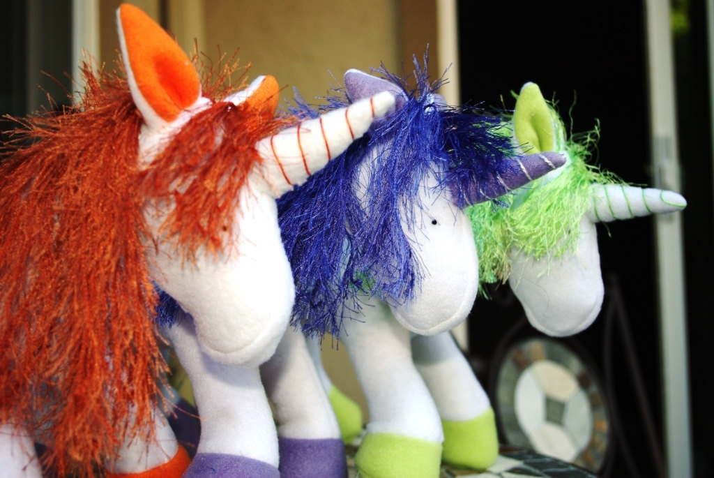 Michelle told me she uses fleece fabric and faux fur to make her custom made Funky Friends. Look at these fabulous rainbow-coloured Unicorns!