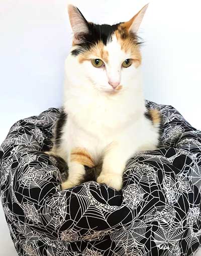 Charlie Ann used the fleece Pet Bed pattern to whip up a seasonal seat for her kitty.