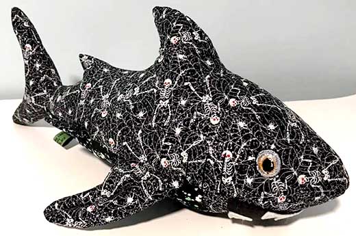 Glow-in-the-dark fabric is perfect for a Halloween Funky Friend. Here’s a Glow-in-the-dark, skeleton shark by Kim lllarietti.
