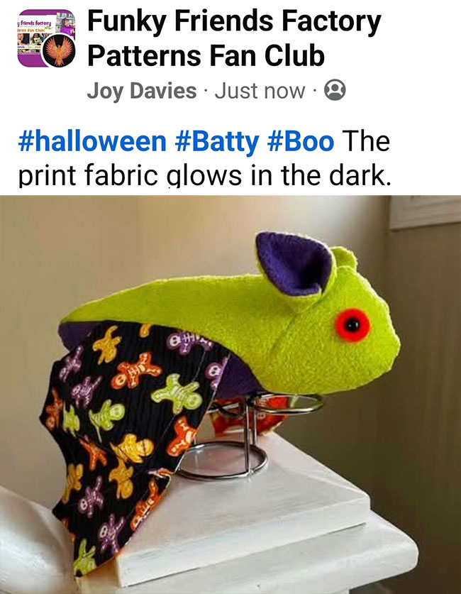 Joy Davies whipped up some spooky Batty Bats with glow in the dark fabric!