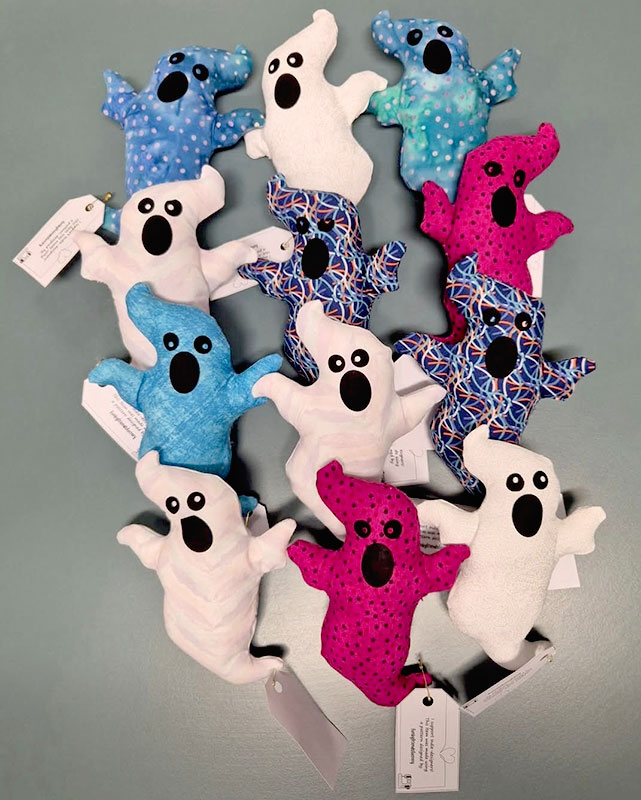 Batty Bat and Boo the Ghost are popular non-candy Halloween treats. Jenny Templeton made a whole heap of toys for a school fete! Jenny also added a note that she attached the free Funky Friends Factory copyright credit tags to her toys. You can see them in each little Boo. Thanks, Jenny!