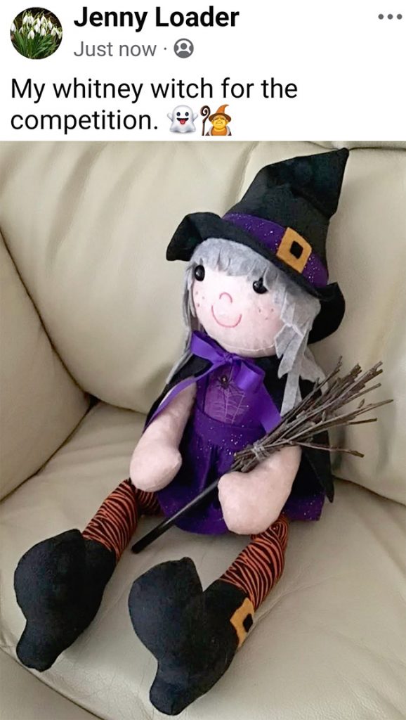 And Jenny Loader dressed her Whitney Witch in traditional black, but added tiger stripe orange socks. Very fashionable!