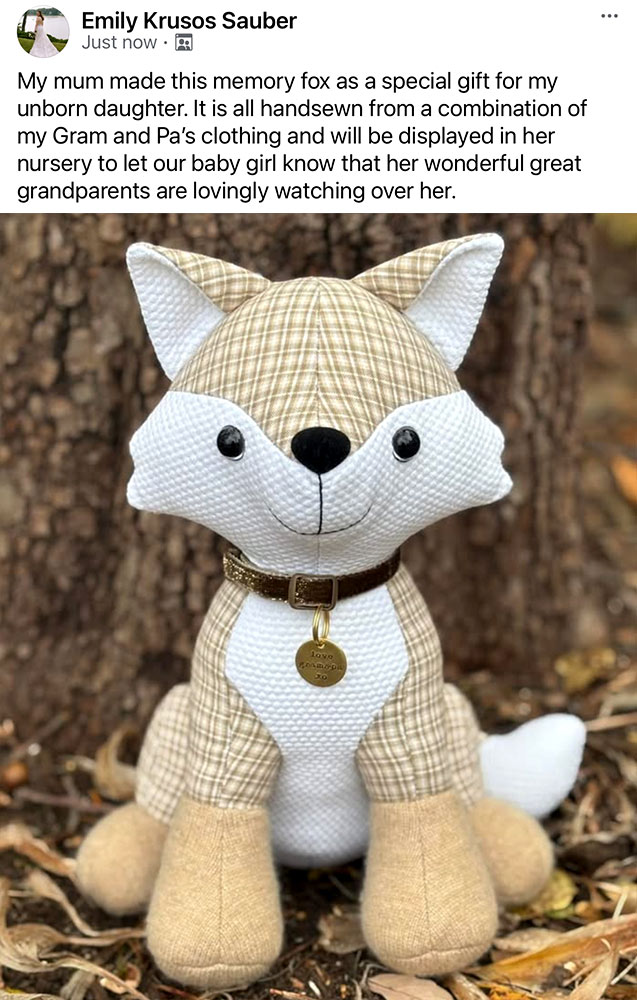 This very special keepsake version of Fifi Fox was sewn by Emily Krusos Sauber’s mother for her daughter – such a sweet story!