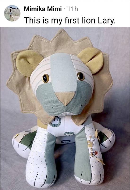 And this cute baby clothes keepsake was sewn by Mimika Mimi – it was the first time she sewed Larry Lion!Β