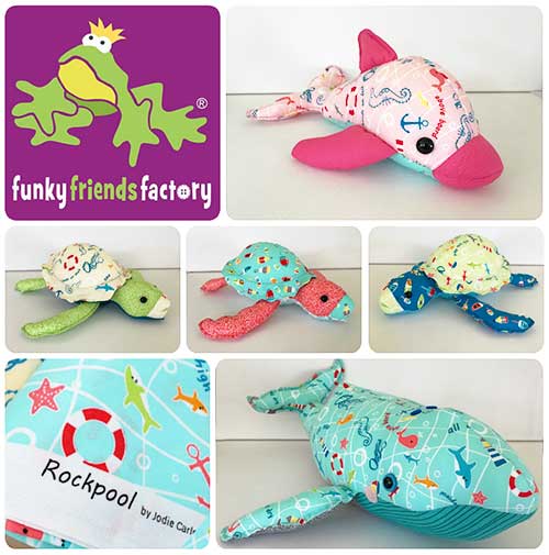 Toys sewn in Rockpool Fabric Range by Jodie Carleton
