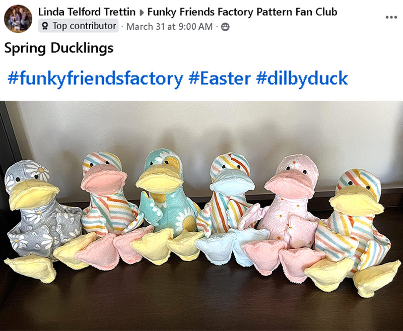 Linda Telford Trettin sewed a bunch of Dilby Ducks too! These fabric choices are all so cute that I can’t pick a favorite.