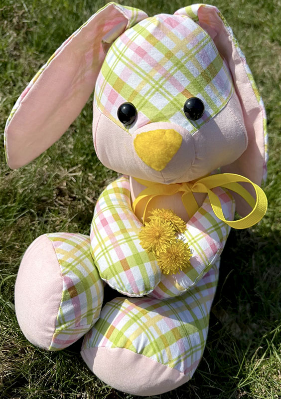 WOW! Lindsey Mortimer has been very busy! She sewed 13 Easter Bunny BuddiesΒ this Easter – some with the grandkids name embroidered on the feet! This pattern makes a great option for clothing keepsakes, whether you use baby clothes or men’s shirts as in the photo below.