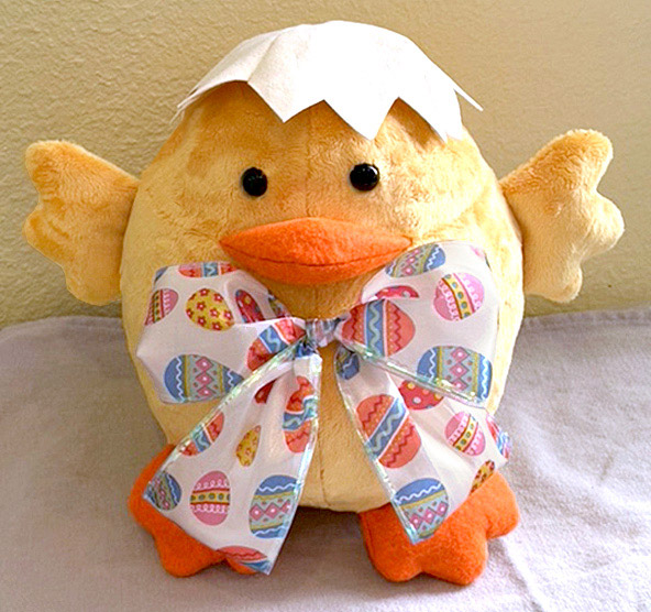 If you’re looking for a huggable Easter friend, the rolly-polly Egghead Easter Chick is a great option. Nancy Redding sewed this Egghead the Easter Chick and used a long flowing bow rather than the regular bow tie option. He looks quite fancy!Β
